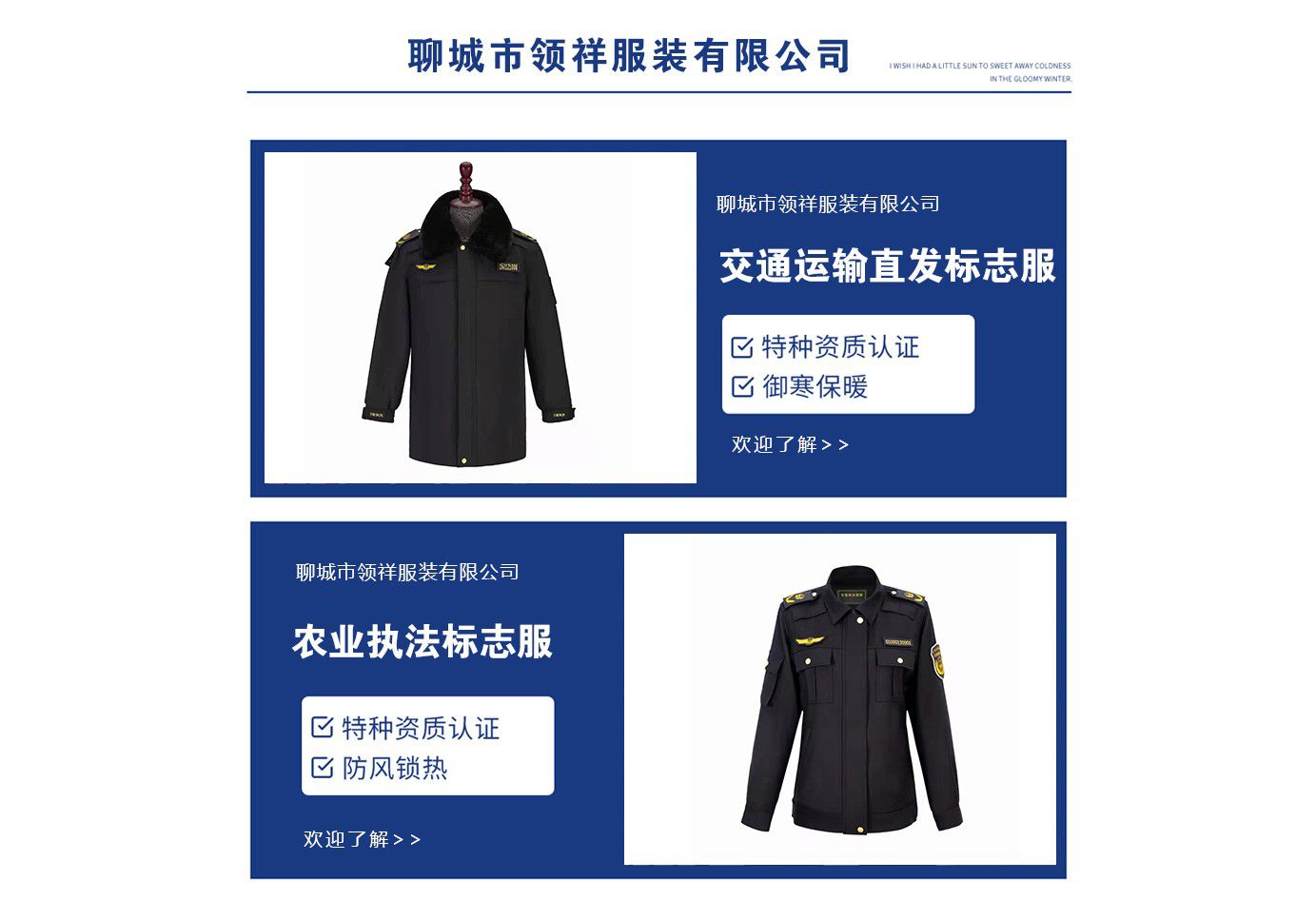 歡迎您訪問聊城市領(lǐng)祥服裝有限公司,真誠(chéng)為您服務(wù)。
