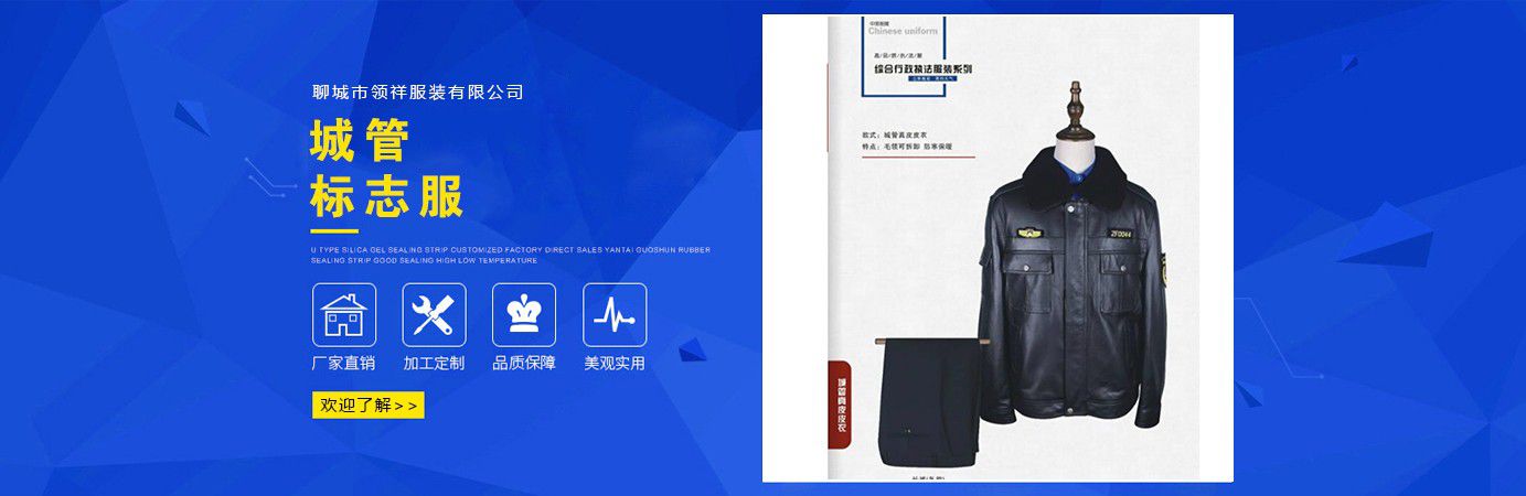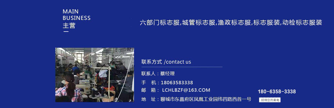 聊城市領(lǐng)祥服裝有限公司主主要生產(chǎn)六部門標(biāo)志服,城管標(biāo)志服,漁政標(biāo)志服,標(biāo)志服裝,動(dòng)檢標(biāo)志服裝,標(biāo)志服裝廠等產(chǎn)品,款式新穎,做工精細(xì),可根據(jù)用戶要求批量定做。公司成立以來(lái),已為各行業(yè)數(shù)千家企業(yè)、集團(tuán)承制了職業(yè)制服。 多年來(lái),我公司本著“質(zhì)優(yōu)高效,守約重譽(yù)”的經(jīng)營(yíng)理念給廣大新老客戶提供質(zhì)優(yōu)價(jià)廉的產(chǎn)品和售后服務(wù)。憑借良好的信譽(yù),雄厚的實(shí)力,優(yōu)質(zhì)的產(chǎn)品,低廉的價(jià)格愿與新老客戶真誠(chéng)協(xié)作,業(yè)務(wù)遍布全國(guó)各地,是山東優(yōu)秀的標(biāo)志服裝廠,歡迎新老客戶參觀考察!  公司生產(chǎn)的職業(yè)服飾均以標(biāo)準(zhǔn)的質(zhì)量,頂尖精湛的技術(shù)為基礎(chǔ),以客戶的滿意為根本,全程采用電腦輔助設(shè)計(jì)制服,成衣、服飾配件(領(lǐng)帶,領(lǐng)結(jié),紐扣,帽子,企業(yè)標(biāo)志等)均可定織定染,普遍采用進(jìn)口或合資優(yōu)質(zhì)輔料,尺碼按身高和體型劃分或量體定制。每一道工序,每一個(gè)生產(chǎn)環(huán)節(jié)精雕細(xì)琢,充分體現(xiàn)了以質(zhì)量求生存,以信譽(yù)求發(fā)展的理念。并以準(zhǔn)確的市場(chǎng)定位,先進(jìn)的營(yíng)銷理念,贏得廣大客戶的信賴支持!  公司宗旨:“團(tuán)結(jié)、服務(wù)、創(chuàng)新”。公司方針:“專業(yè)創(chuàng)造輝煌,質(zhì)量保證未來(lái),用心換得人心”。熱誠(chéng)歡迎業(yè)界同仁來(lái)公司洽談!...
